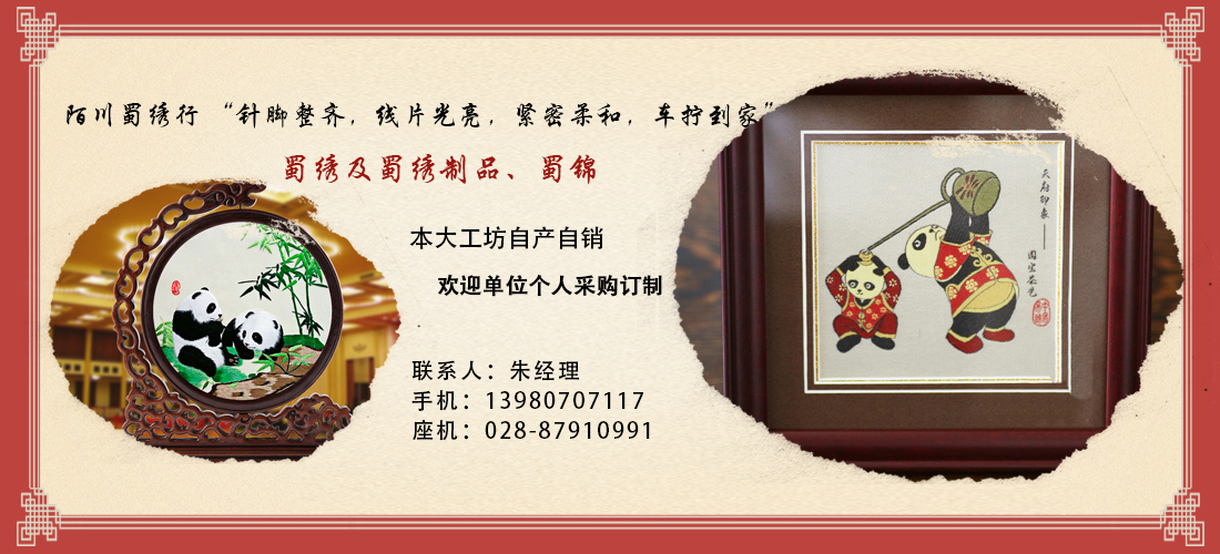 公司业务范围广泛,包括批发兼零售:工艺品、办公用品、日用品、服装、蜀绣制品。展厅位于金牛区成华街3号附3号(地铁1号线人民北路D1口下)。欢迎广大蜀绣爱好致电咨询或者者到店参观。